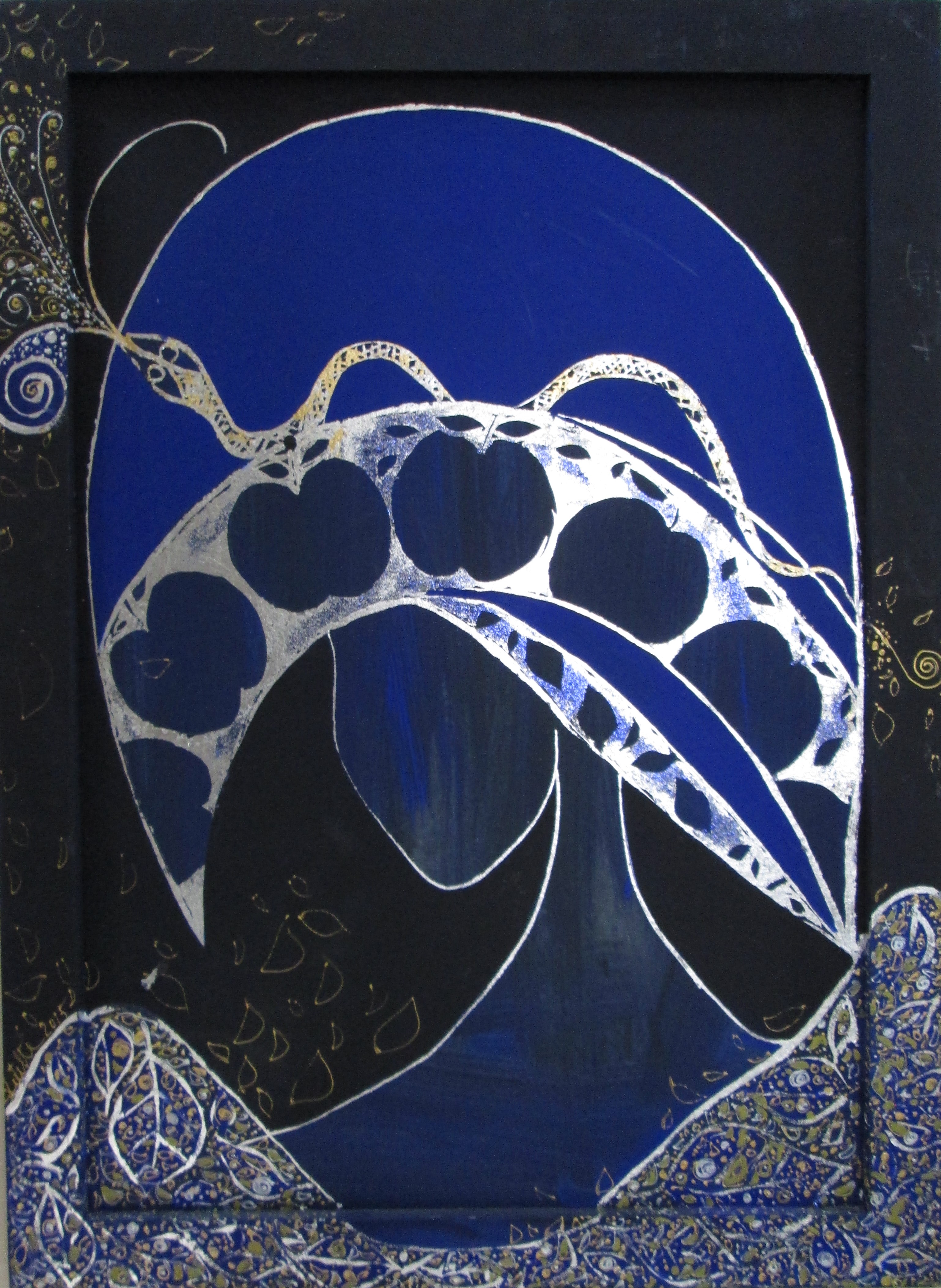 Lucrarea „Eva” apartine artistei Iftodi Luisa. Tehnica acrilic+foita/P.F.L., dimensiune 47,5/68 cm.